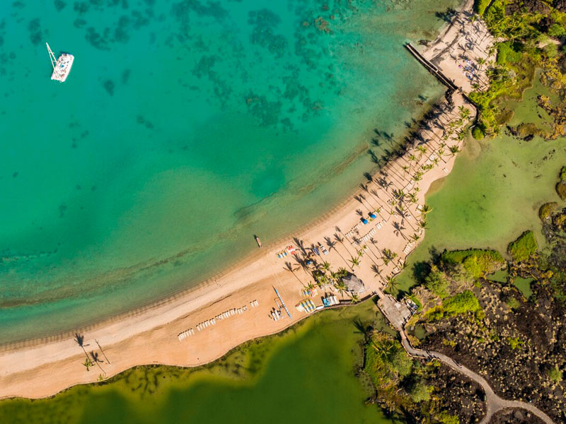 Dieses Resort empfängt Sie an der Küste Kohalas mit Blick auf hellen Sandstrand. Freuen Sie sich auf Wanderung über Lavafelder, schwarze Strände und vielleicht entdecken hier schon Meeresschildkröten?