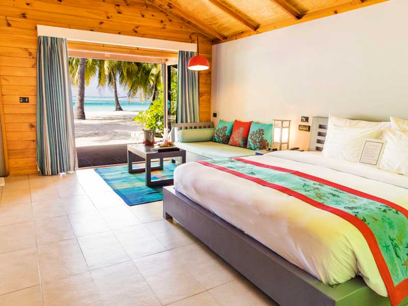 Diese sehr beliebte Resort-Insel, auf der Sie u. a. die Gelegenheit eines 9-Loch Golfplatzes geniessen können, verspricht erholsame Flitterwochen in perfekter Honeymoon-Atmosphäre mit „adults only“-Bereichen auf einer Inselgröße von 1200 x 350 Meter. Die große Lagune garantiert beste Bade- und Wassersportmöglichkeiten. Tauchen Sie ab in diesen tropischen Inseltraum voller Freude und Liebe! Die freistehenden Strand-Villen haben eine Terrasse mit Meerblick. Wasser-Villen stehen unmittelbar am Strand mit halboffenem Badezimmer und Außentreppe ins Meer.