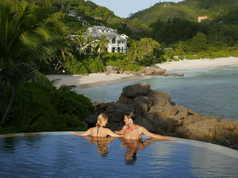 Das Banyan Tree Seychelles verfügt über exklusive Villen, die aufgrund ihrer atemberaubenden Lage inmitten ursprünglicher Vegetation viel Privatsphäre bieten. Auch das hohe Serviceniveau und die gute Küche des Resorts tragen zu perfekten Flitterwochen bei. Ein luxuriöses Resort in malerischer Lage mit herrlichem Blick über die Bucht.