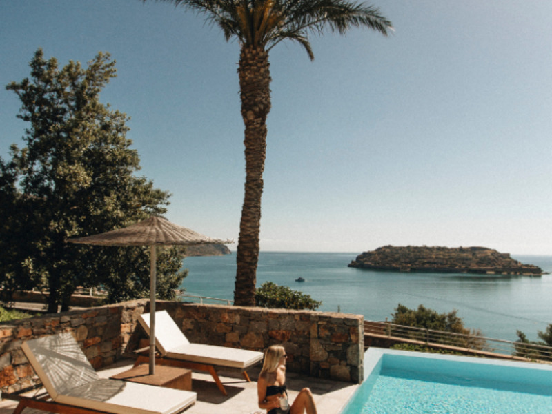 Im Osten der griechischen Insel Kreta mit beeindruckender Aussicht auf das Meer und die Insel Spinalonga. Der Ortskern von Plaka mit Restaurants und Einkaufsmöglichkeiten ist fußläufig erreichbar (ca. 400 m). Zum Flughafen Heraklion sind es ca. 80 km.