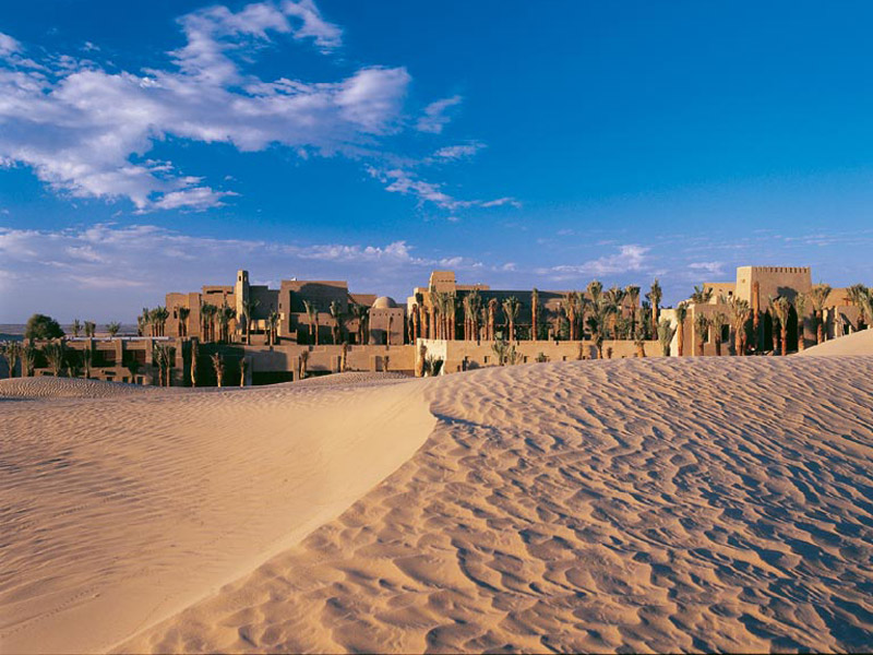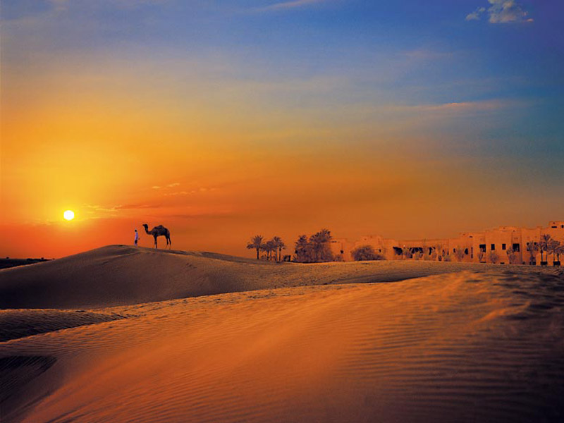 Inmitten der Wüste – 60 km von Dubais Stadtzentrum entfernt – liegt „Das Tor zur Sonne“. Entfliehen Sie dem Großstadtrummel und genießen Sie die einmalige Stimmung und Ruhe in der endlos scheinenden Wüstenlandschaft. Verschlungene Gänge und Gebäude , die durch Innenhöfe, Torbögen und Gärten mit zahlreichen Palmen miteinander verbunden sind – die Wüste lebt!