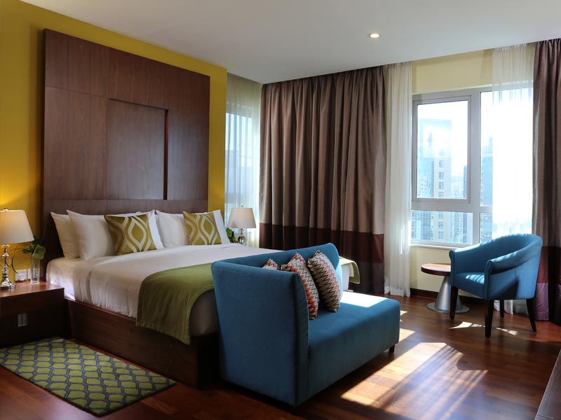 Das Hotel verfügt über 181 Wohneinheiten. z.B. : 1 Bedroom Suite City View: ca. 80 qm, modern und komfortabel eingerichtet mit großem Glasfenster und Blick auf die Stadt, mit Küche und separatem Schlafzimmer, Bad/WC und separater Dusche, Föhn, TV (Flachbildschirm), Telefon, Internetzugang WLAN (gegen Gebühr), Klimaanlage, Minibar, Kaffee-/Teezubereiter und Safe.
