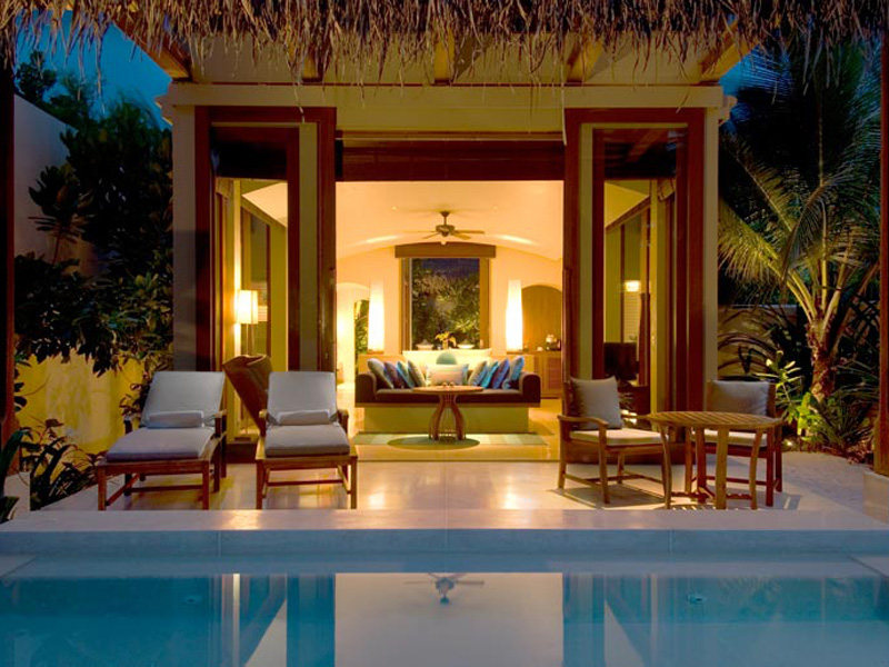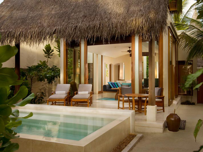 Deluxe Beach Villa with Pool (auf Rangalifinolhu): ca. 300 qm, mit direktem Strandzugang, Ausstattung wie Beach Villa; zusätzlich mit Außendusche, Tagesbett und Pool