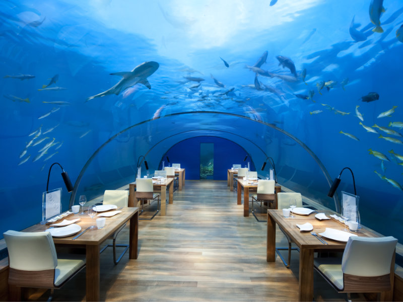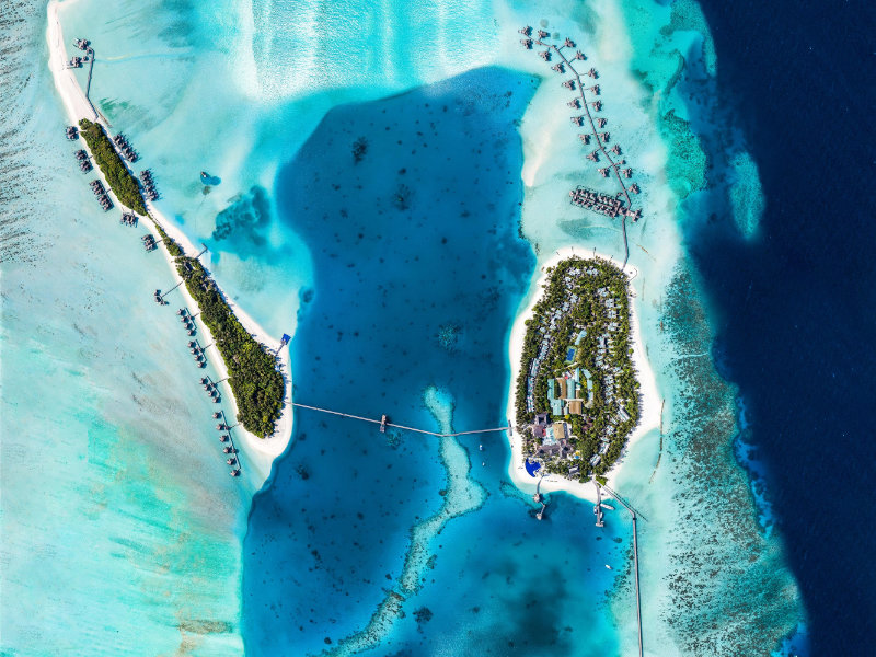 Diese traumhafte Urlaubswelt besteht aus 2 Inseln. Sie bestechen durch eleganten Komfort und die geschmackvolle Gesamtkonzeption mit typisch maledivischem Ambiente. Das nicht nur bei Tauchern sehr beliebte Resort hat eine Länge von 650 m und eine Breite von 350 m. Auf der Hauptinsel Rangalifinolhu mit adults only Konzept befinden sich die Beach-Villen, Deluxe-Beach-Villen und Grand-Water-Villen. Hier finden Sie die Rezeption mit gemütlichen Sitzgruppen, eine Bibliothek, einen Juwelier, drei Boutiquen, zwei Bars und vier Restaurants. Ein besonderes Highlight ist das Unterwasserrestaurant "Ithaa", welches unter dem Meeresspiegel gelegen ist und Ihnen während Ihres Dinners ein einzigartiges Schauspiel bietet.