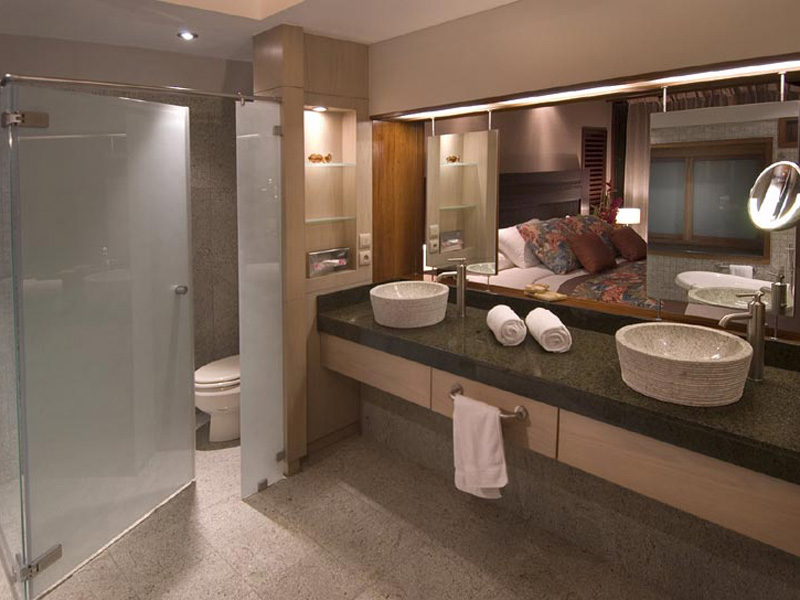 104 Bungalows in verschiedenen Kategorien sind ausgestattet mit Bad, separater Dusche und Badewanne (teilweise mit Außendusche), Föhn, Bademantel, TV, Telefon, Klimaanlage, Deckenventilator, Minibar, Kaffee- und Teestation, Safe und Terrasse mit eigenem kleinem Pool.