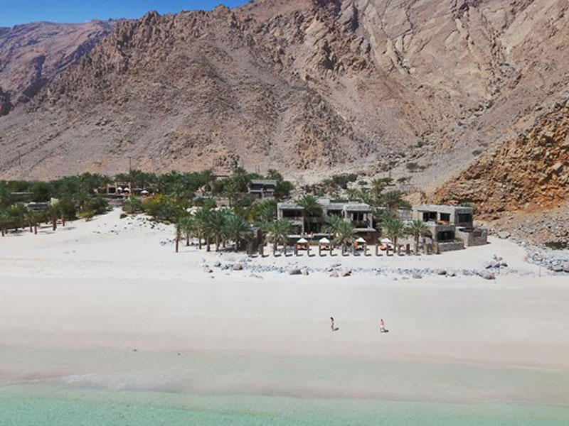 Am Fuße der spektakulären Berglandschaft des Hajjar-Gebirges liegt in einzigartiger Naturidylle das märchenhafte Resort in traditionellem Baustil an einem langen Sandstrand der Zighy Bay. Die Naturverbundenheit ist in jedem Atemzug spürbar und ein einzigartiger Ausblick über den Golf von Oman lädt zum Entspannen ein.