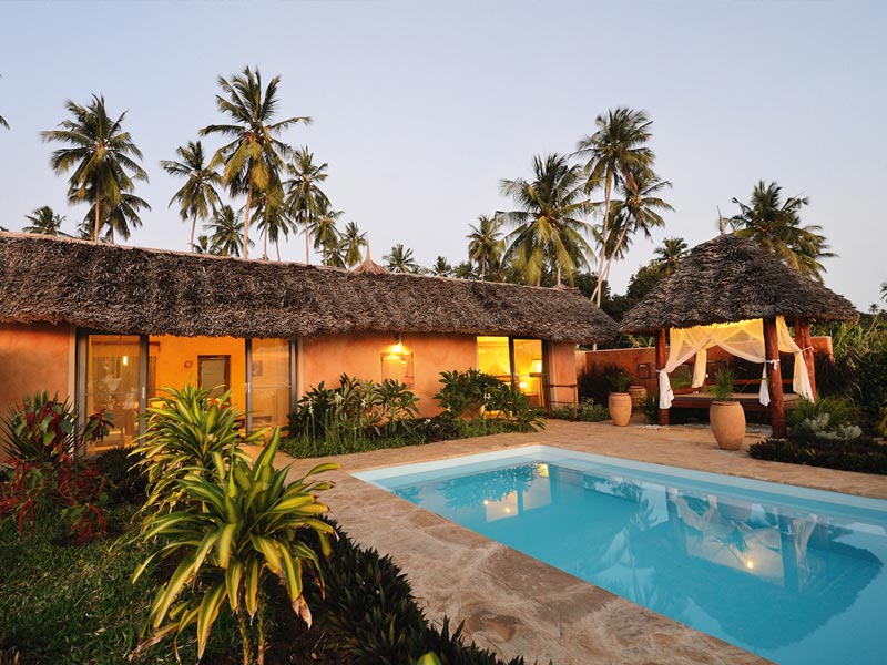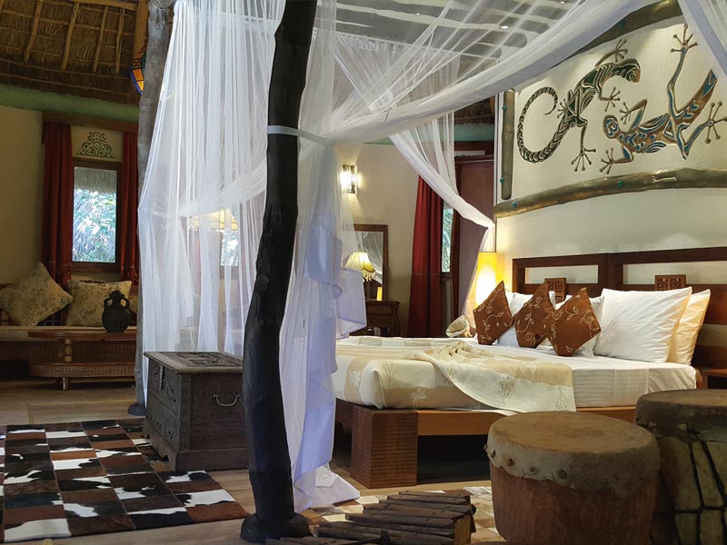 Die insgesamt von tropischen Gärten umgebenen 13 Villen sind aufgeteilt in 2 verschiedene Kategorien: Ocean View Luxury Villa & African Eco Villa. Die Villen bieten mit ihren 75m² Platz für max. 4 Personen, davon besitzen einige der Villen einen eigenen Pool. Auch bei der Ausstattung der Villen fehlt es nicht an luxuriösen Annehmlichkeiten. Von Kingsize Betten über eine Außendusche und kleinem Pavillon, der von einem Mückennetz umgeben ist, wo man beruhigt entspannen und die Sterne zählen kann bishin zu A/C, TV, DVD, werden Sie alles vorfinden. Jedes Apartment ist so platziert, dass jeder seine Privatsphäre hat und keiner wird Sie am Strand stören, da wir 24h Security Personal am Strand vor Ort haben.