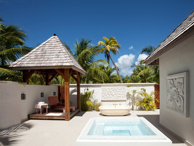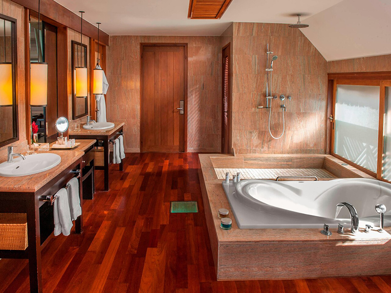 90 Villen in verschiedenen Kategorien sind ausgestattet mit separatem Wohn- und Schlafzimmer, Bad, Außendusche, Föhn, Bademantel, TV, DVD-/CD-Player, Tee- Kaffeezubereiter, Minibar, Safe, Klimaanlage, Sonnendeck oder Terrasse, 24-Stunden-Butler-Service.