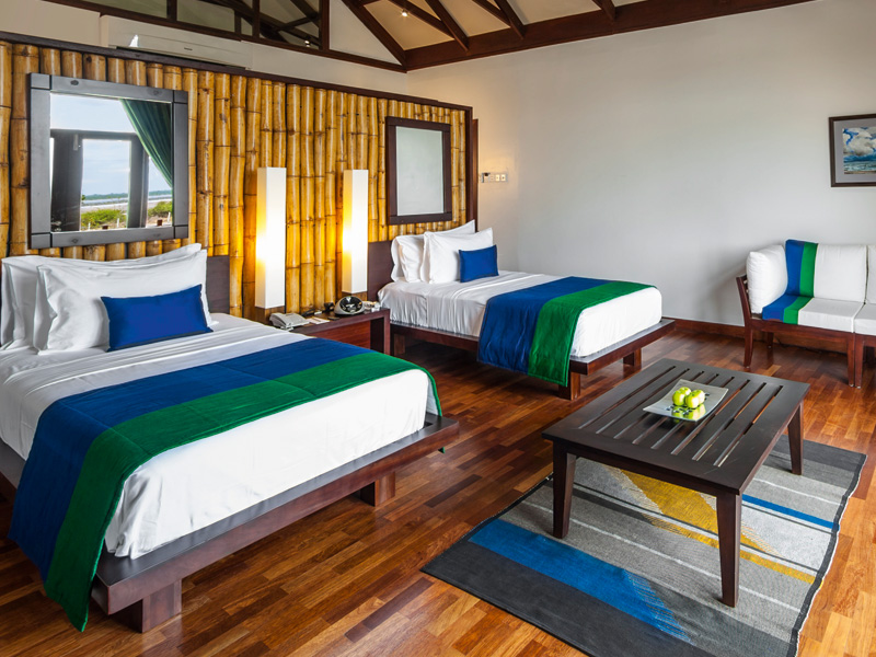 Die 48 aus Holz konstruierten Cabins geben dem Resort seinen ganz eigenen Charme. Alle Zimmer sind mit Kingsize- oder Twinbetten, Terrasse oder Balkon mit Sonnenstühlen oder mit Essgelegenheit ausgestattet. Von der Terrasse aus kann die Tier- und Pflanzenwelt des Dschungels beobachtet werden. 13 Jungle Cabins (60 m²): Die Jungle Cabins gestatten durch ihre versteckte Lage im Dschungel äußerste Privatsphäre. Die Cabins verfügen je über Kingsize-Betten und eine Außen-Regendusche. 14 Beach Cabins (60 m²): Von den Beach Cabins aus kann der Strand direkt über einen kleinen Privatweg erreicht werden.